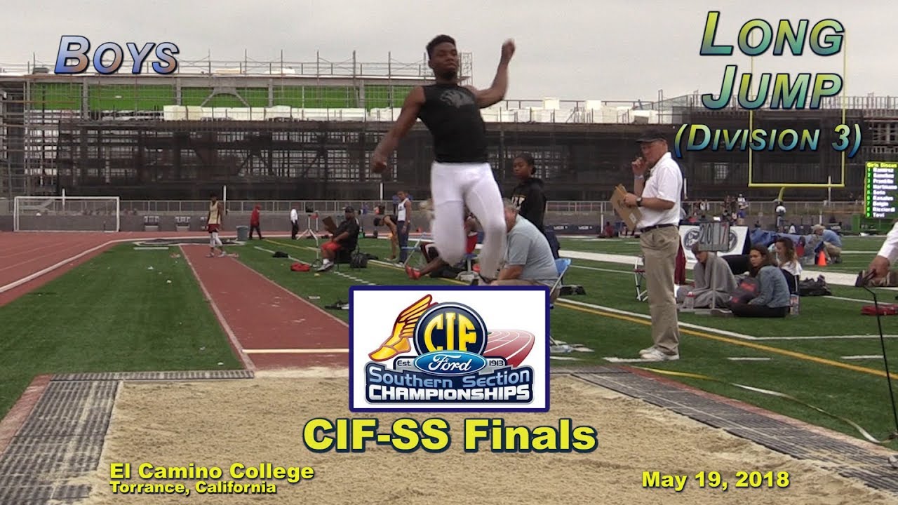 Here is the Division 3 Boys Long Jump from the 2018 CIF (Southern Section) Track and Field Finals meet held on May 19, 2018 at El Camino College in Torrance, California.